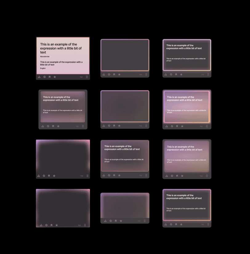 The next thing I had to figure out was what on earth to do with the polaroid concept. See, Phrasing has these animated, gentle, undulating gradients that help indicate which language a card is in. I'd tried many times to convert them to dark mode, but frankly, they just looked awful. Just awful: