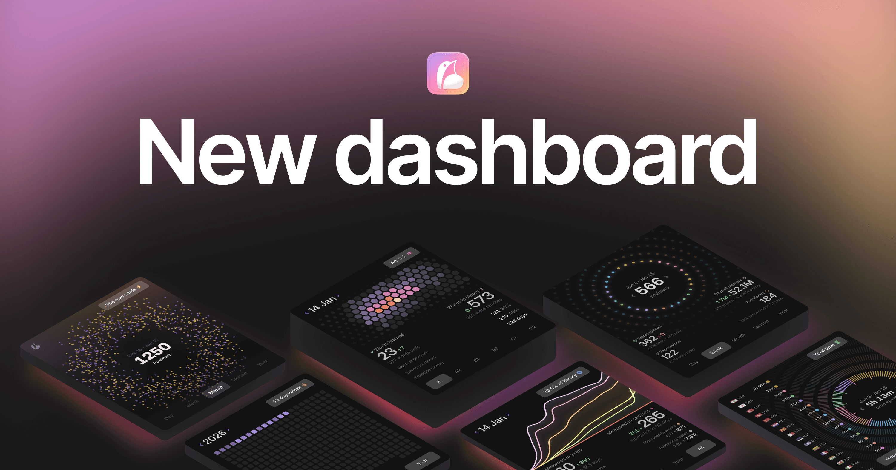I've had analytics in Phrasing for a while, but they were always significantly more lackluster than the rest of the application. I've also long had this dream/idea of the current dashboard, with these swipe-able cards… and while that worked for a while, I was always at the whim of the charting libraries, and constantly fighting an uphill battle against performance.