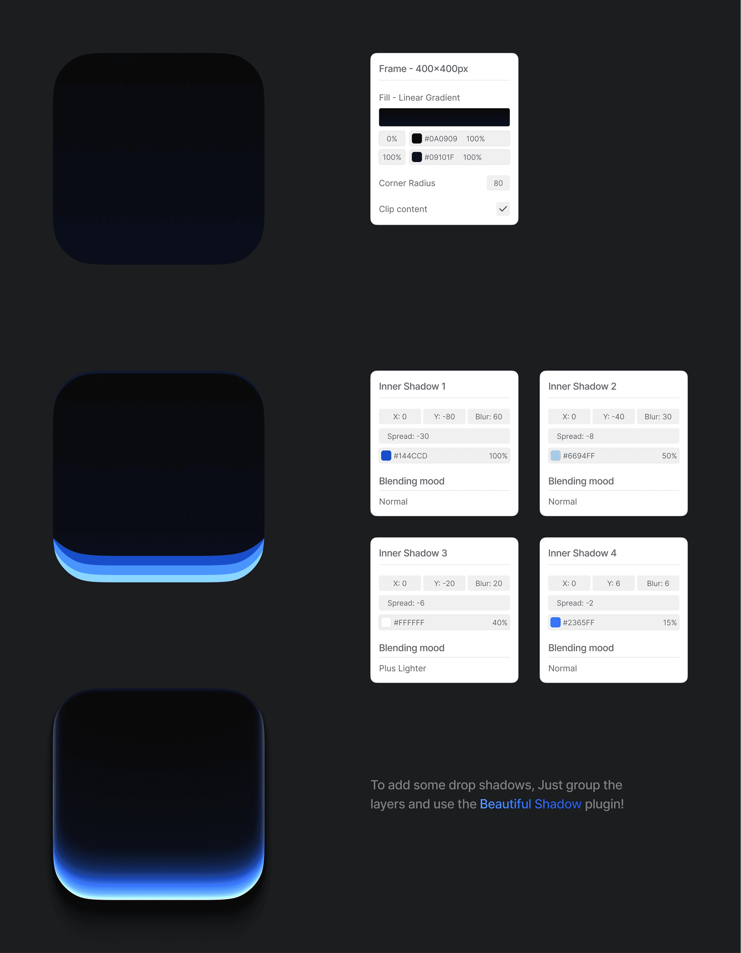 So I set off to create three layers, all with the same hue, that have configurable intensities and blurs. After days of tweaking, I finally arrived at what I call Tokyo Night: